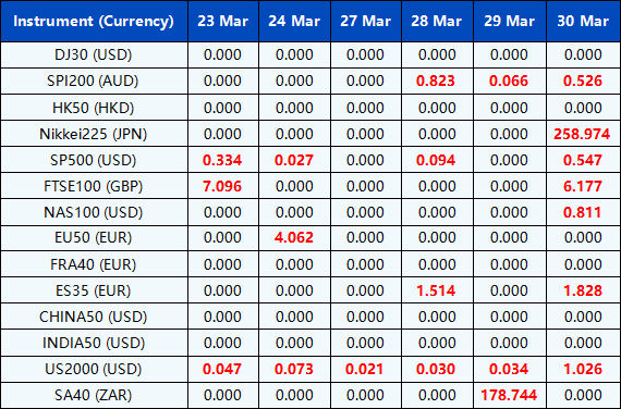Please be advised that the dividends of the following index CFDs will be adjusted by upcoming ex-dividend dates. The comment for trading index CFDs will be in the following format “Div&<Product Name>&<Net Volume>” which show in the balance after the close of the day before the dividend payment date.